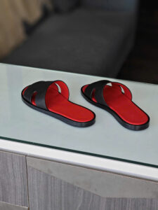 Trước khi giao hàng, mỗi đôi dép đều được dán sẵn lớp chống trơn Ý để bảo vệ phần đế da – một chi tiết nhỏ nhưng thể hiện sự chỉn chu đặc trưng của Thế Phạm.