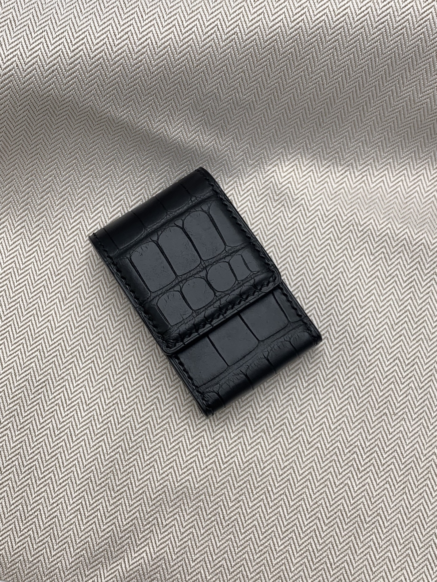 Bao da bật lửa Dupont da cá sấu đen nhập Pháp được chế tác hoàn toàn từ da cá sấu thật, loại da có độ bền vượt trội và vân da đặc trưng, tạo nên vẻ ngoài độc đáo, mạnh mẽ. Da được nhập khẩu từ Pháp – vùng đất nổi tiếng với những tiêu chuẩn khắt khe trong ngành thuộc da và thời trang thủ công.
