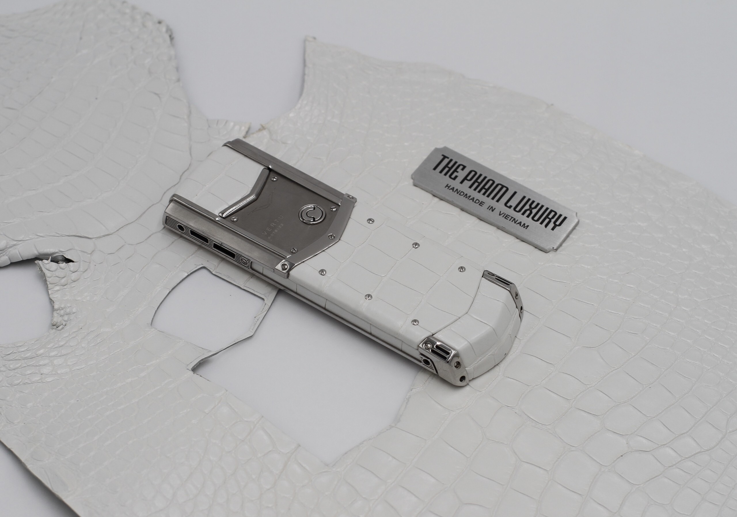 Trong thế giới của những chiếc điện thoại xa xỉ, Vertu Signature S luôn được xem là biểu tượng của sự sang trọng và cá tính. Tuy nhiên, để thiết bị này thực sự phản ánh trọn vẹn phong cách riêng của chủ nhân, việc khoác lên nó một lớp da thủ công đẳng cấp là lựa chọn hoàn hảo. Bọc da điện thoại Vertu Signature S cá sấu Pháp màu trắng ngọc trai, vân bụng – một sản phẩm chế tác tại Thế Phạm – chính là sự kết hợp hài hòa giữa chất liệu quý hiếm, màu sắc độc bản và kỹ thuật thủ công tinh xảo.
