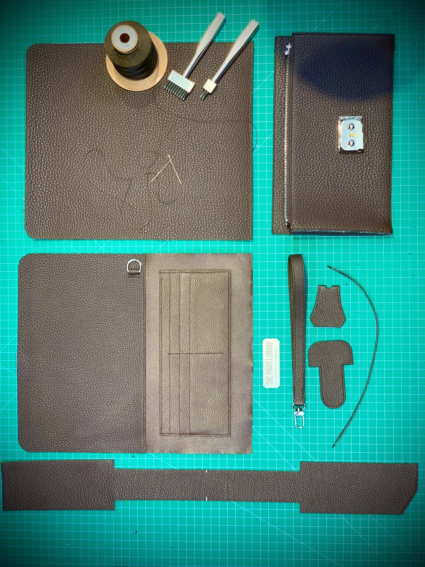 Không sử dụng máy móc công nghiệp, H Clutch – Clutch da Togo thủ công được hoàn thiện hoàn toàn bằng tay bởi các nghệ nhân Thế Phạm. Từ khâu cắt da, xử lý viền cạnh, đến may tay tỉ mỉ từng mũi chỉ – tất cả đều phản ánh sự chỉn chu và kỹ thuật truyền thống.