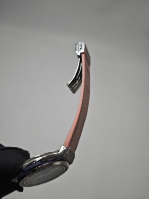 Da cá sấu được sử dụng tại Thế Phạm là da nhập khẩu từ Pháp, tuyển chọn kỹ lưỡng từ những tấm da đạt chuẩn về độ đều vân, độ đàn hồi và khả năng giữ form lâu dài. Màu hồng được xử lý theo tông trầm – không quá rực – nhằm giữ được sự tinh tế, sang trọng, đồng thời tạo điểm nhấn khác biệt cho Classic Fusion mà không làm mất đi bản sắc vốn có của đồng hồ.