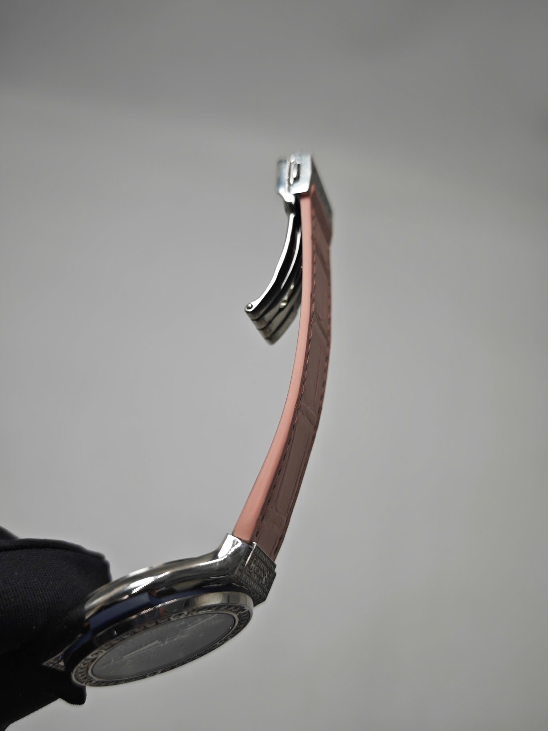 Dây cá sấu màu hồng không dành cho số đông. Đây là lựa chọn của những khách hàng hiểu rõ gu thẩm mỹ cá nhân, yêu thích sự khác biệt nhưng vẫn đặt yếu tố tinh tế lên hàng đầu. Khi kết hợp cùng Hublot Classic Fusion, sắc hồng mang lại cảm giác hiện đại, thời trang, nhưng vẫn giữ được nét sang trọng cần có của một chiếc đồng hồ cao cấp.