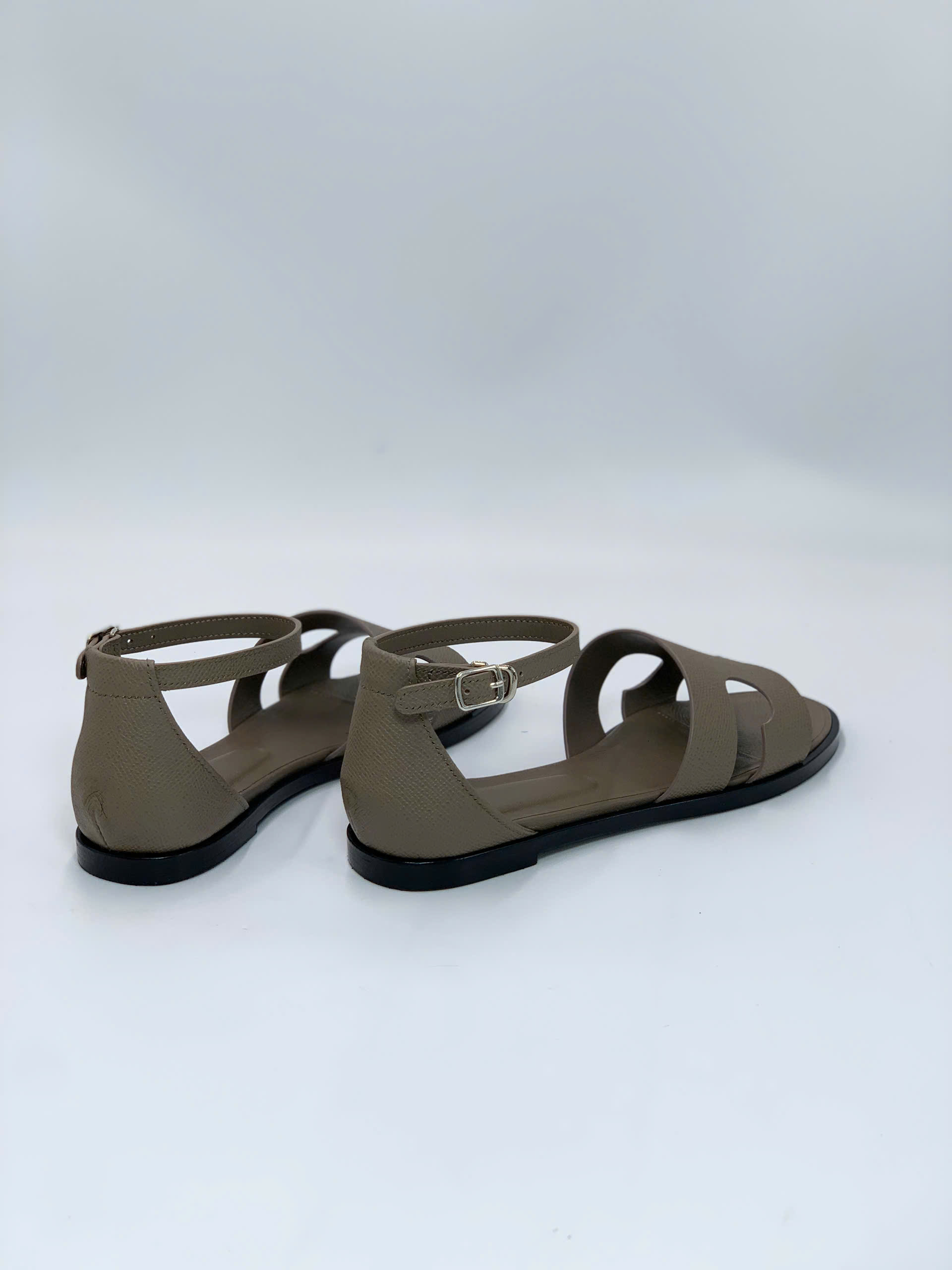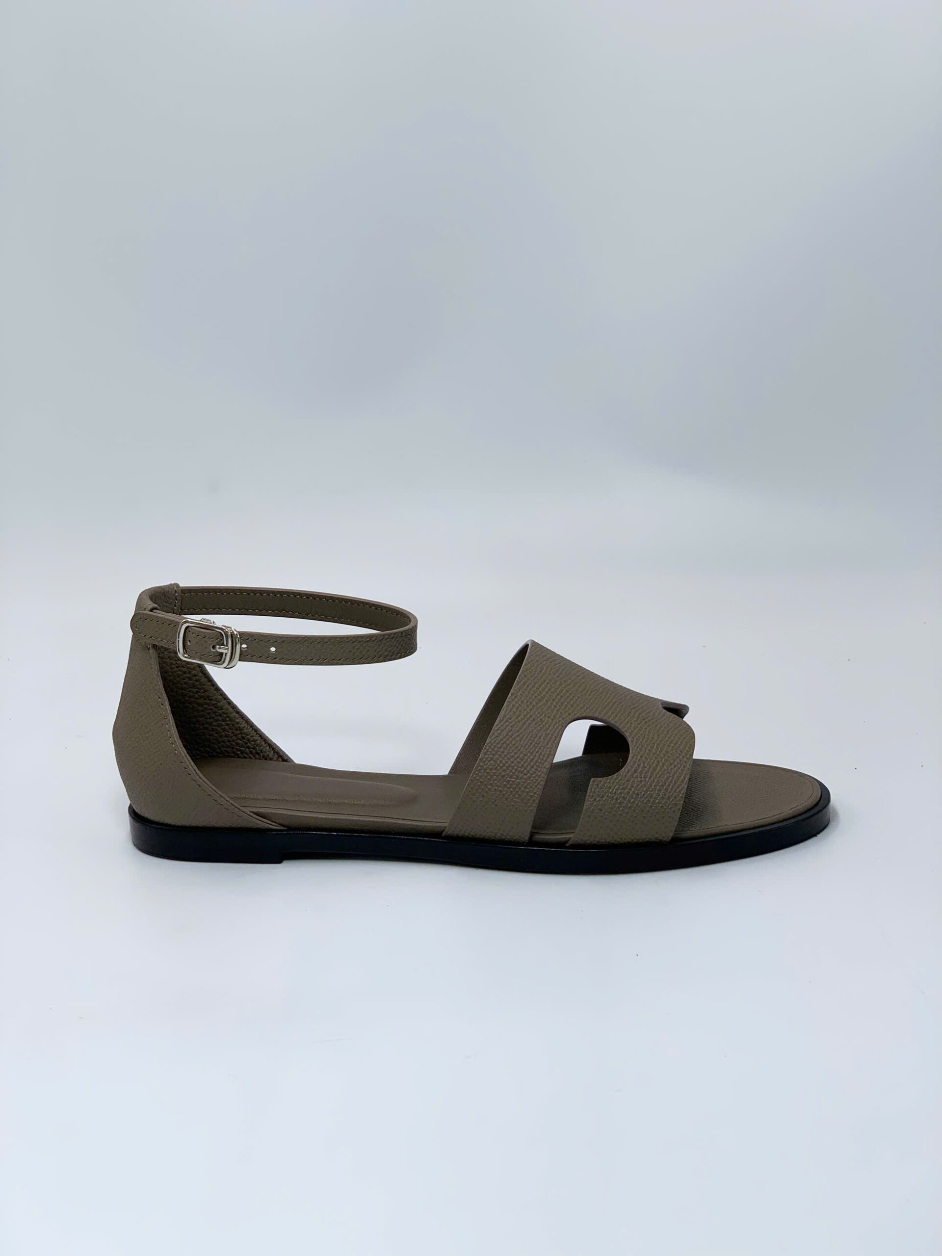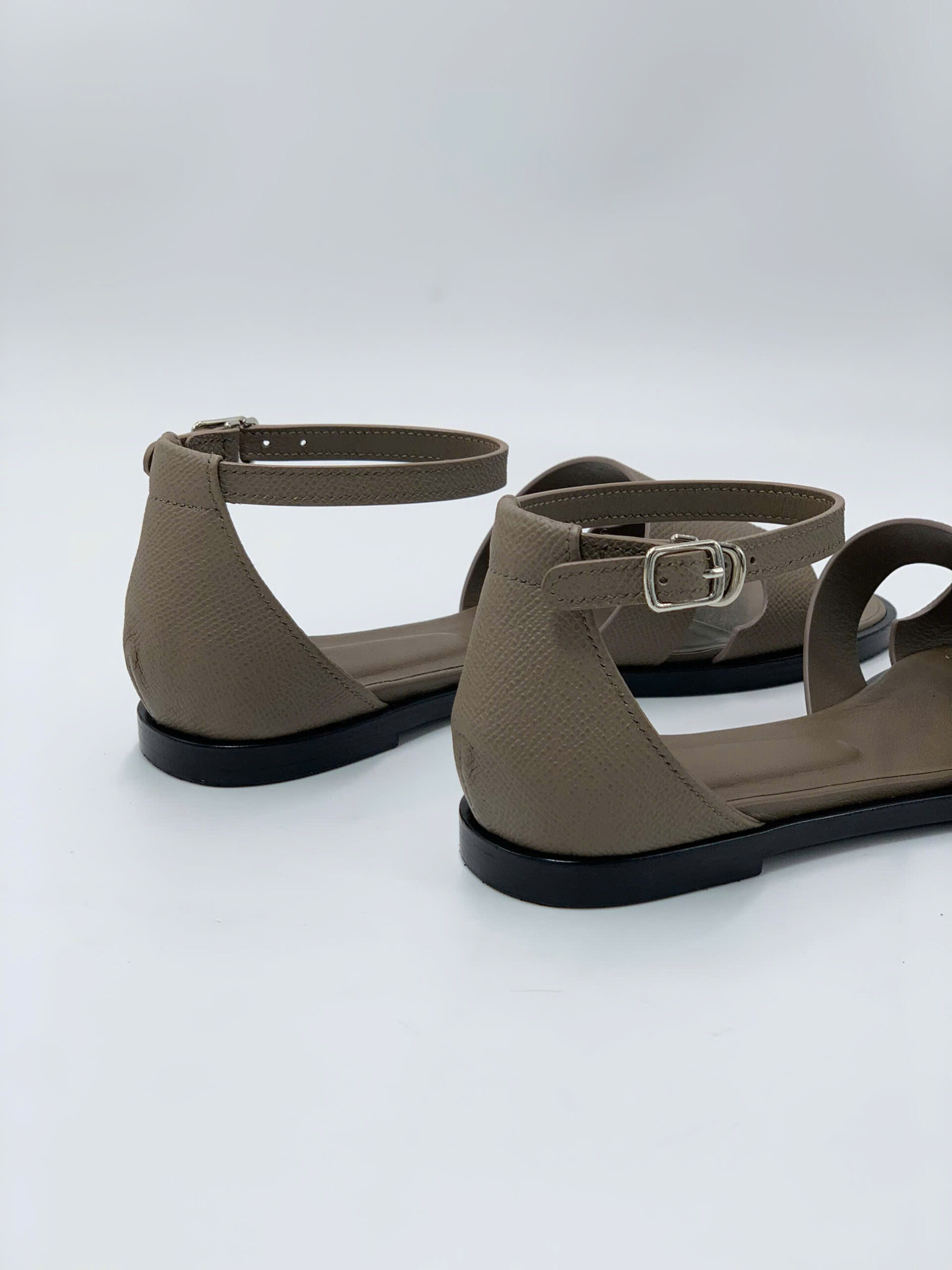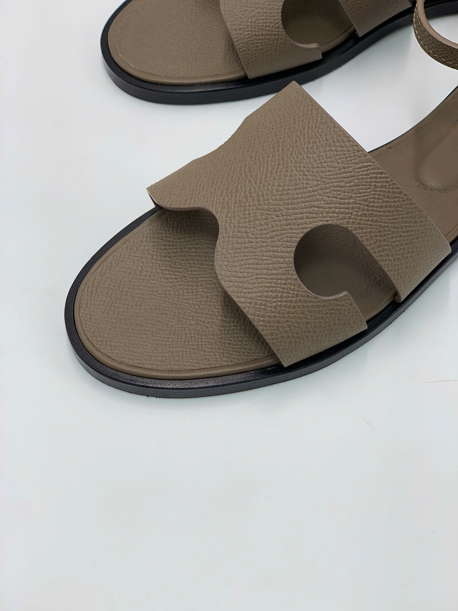 Phần thân dép được chế tác từ da Epsom nhập khẩu từ Đức thuộc nhà thuộc da Weinheimer. Đây là một trong những nhà thuộc da danh tiếng tại châu Âu, nổi tiếng với các dòng da bê cao cấp được nhiều thương hiệu luxury sử dụng.