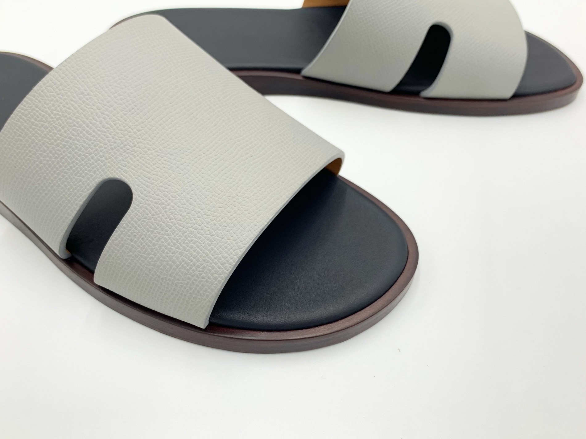 Màu xám trắng thanh lịch kết hợp với lớp lót đen cá tính tạo nên sự đối lập độc đáo, vừa hiện đại vừa dễ phối đồ. Dù kết hợp với quần jeans, kaki hay trang phục đi dạo, đôi dép vẫn giúp người mang thể hiện gu thẩm mỹ tinh tế.