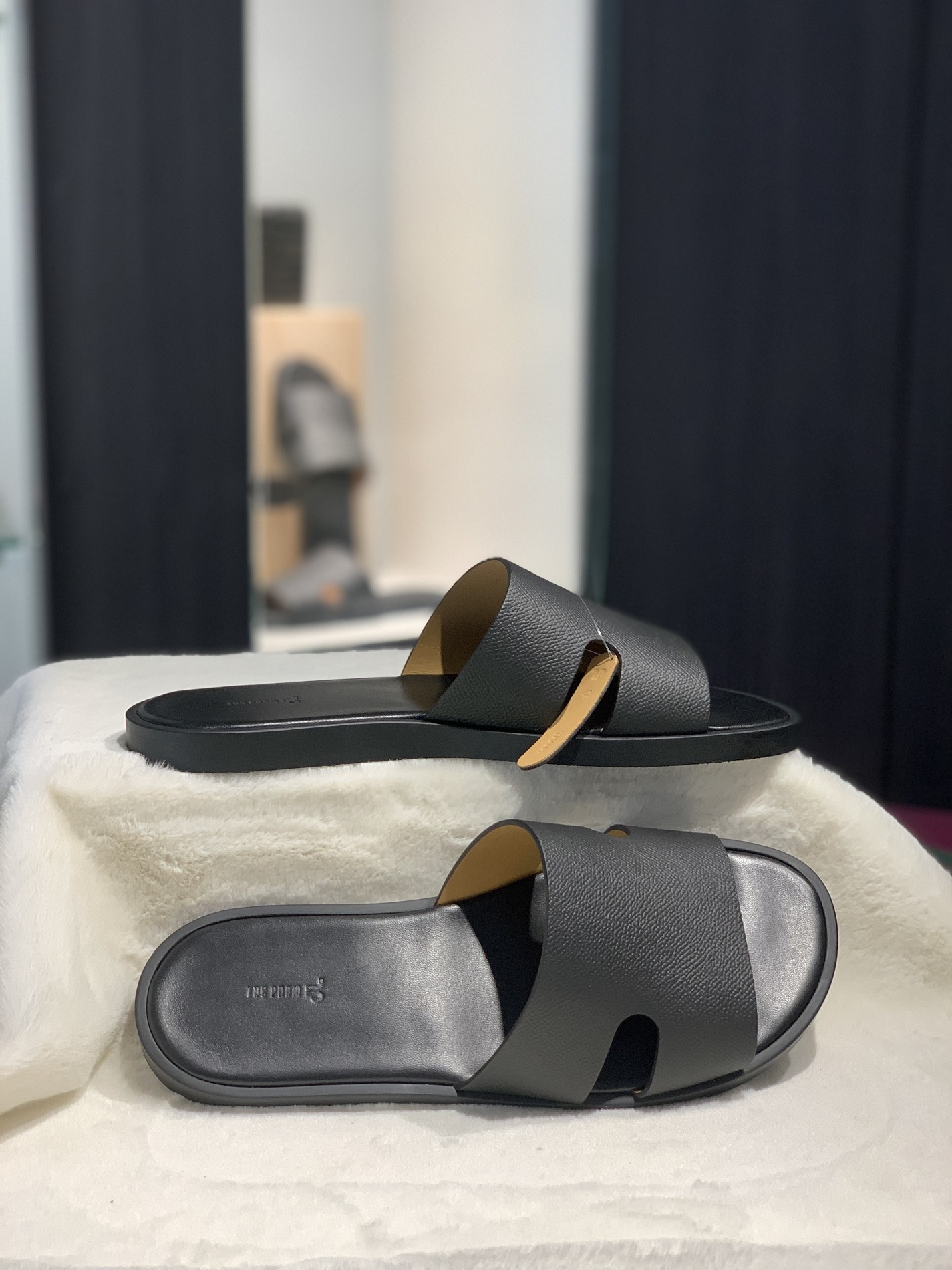Quai dép: Da Epsom Weinheimer Đức, nổi bật với độ bền, khả năng chống xước và chống thấm tốt. Phần quai được khâu thủ công tỉ mỉ, vừa chắc chắn vừa tăng giá trị thẩm mỹ.
