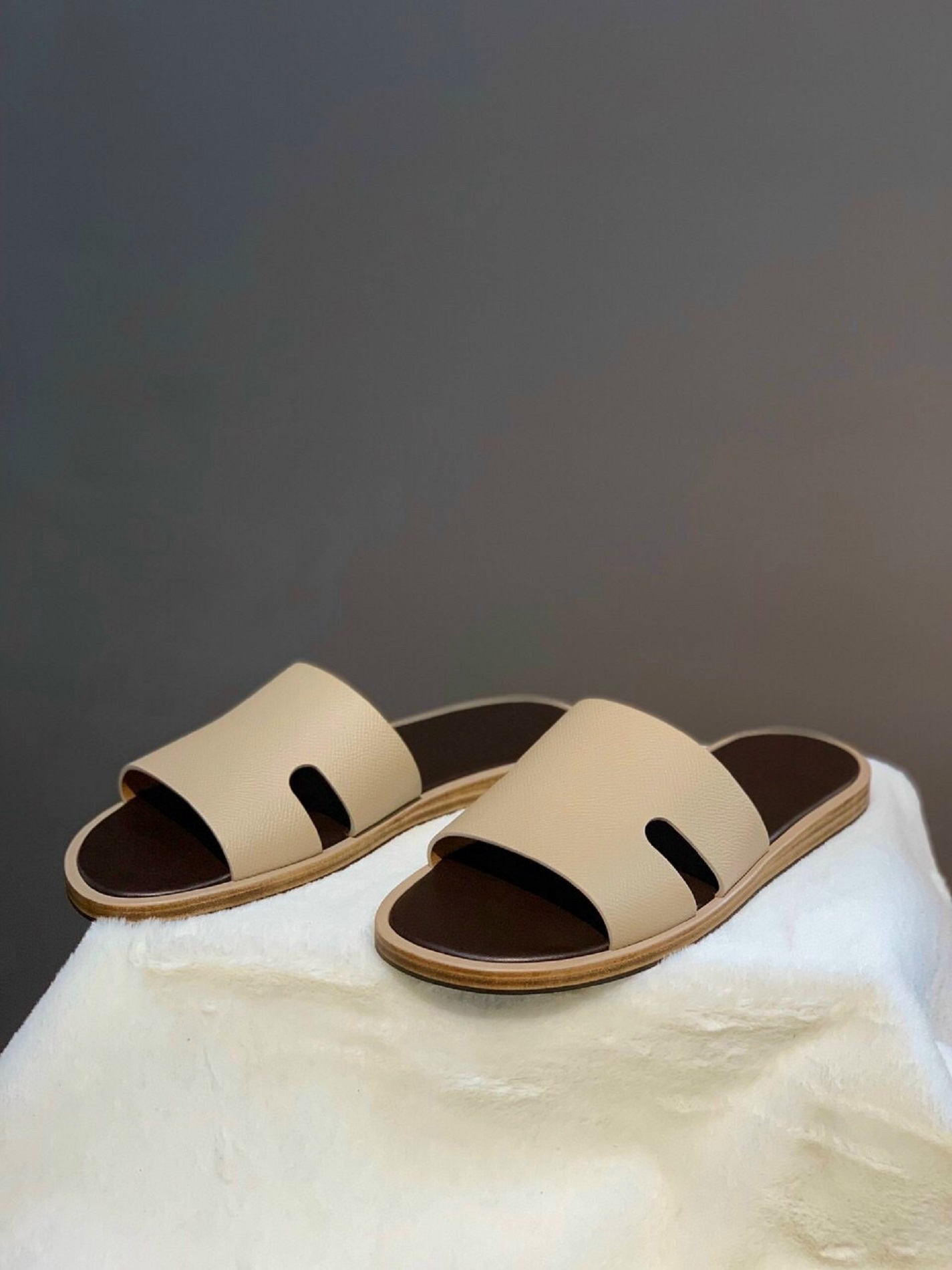 Màu beige kết hợp lót nâu tạo nên vẻ ngoài thanh lịch, dễ dàng phối hợp với nhiều trang phục thường ngày. Thiết kế dép đơn giản, không rườm rà, tôn lên chất liệu và tay nghề chế tác. Đôi dép vừa mang tính ứng dụng cao, vừa mang nét sang trọng tinh tế của một sản phẩm cao cấp.