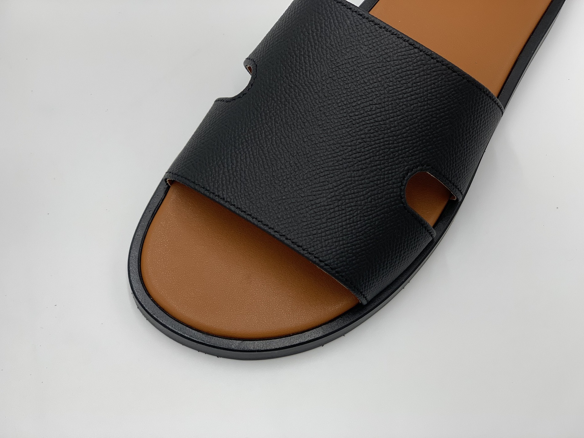 Quai dép: Da Epsom Weinheimer Đức – dòng da nổi tiếng về độ bền, khả năng chống xước, chống nhăn và giữ form vượt trội. Điểm đặc biệt, phần quai được khâu thủ công viền tỉ mỉ để tạo độ chắc chắn và thẩm mỹ cao.