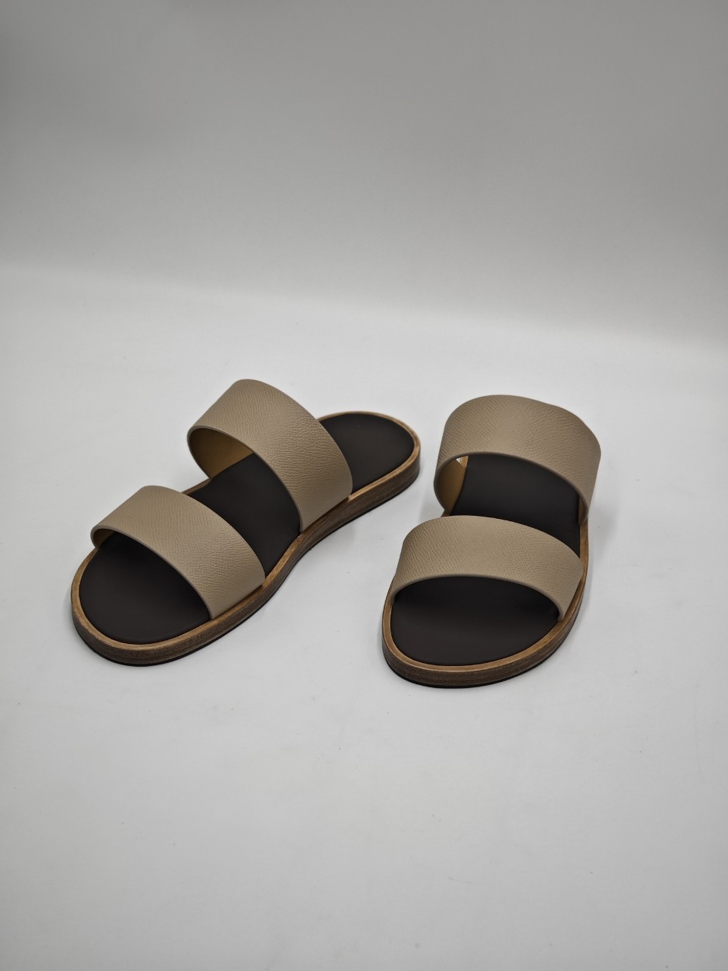 Đế dép sử dụng da veg-tan (thuộc thảo mộc) từ Ý, bền chắc và đẹp lên theo thời gian sử dụng. Loại da này không chỉ thân thiện với môi trường mà còn mang lại cảm giác “ăn chân” – càng đi càng mềm, càng bám tốt.