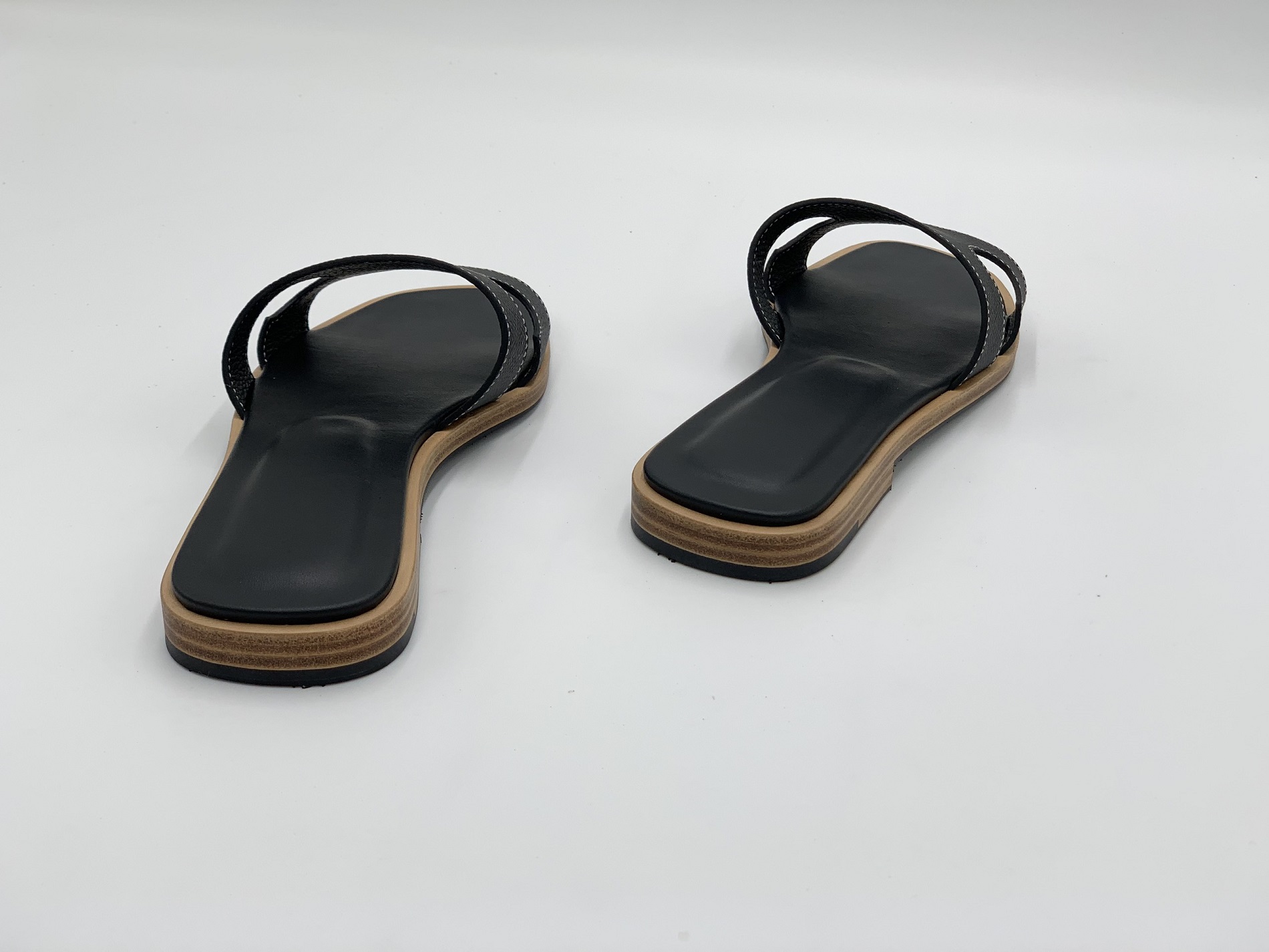 Phần đế dép làm từ da veg-tan Ý – loại da thuộc thực vật bền chắc, nhẹ và thân thiện với môi trường, được Leather Working Group chứng nhận về chất lượng và quy trình sản xuất bền vững.