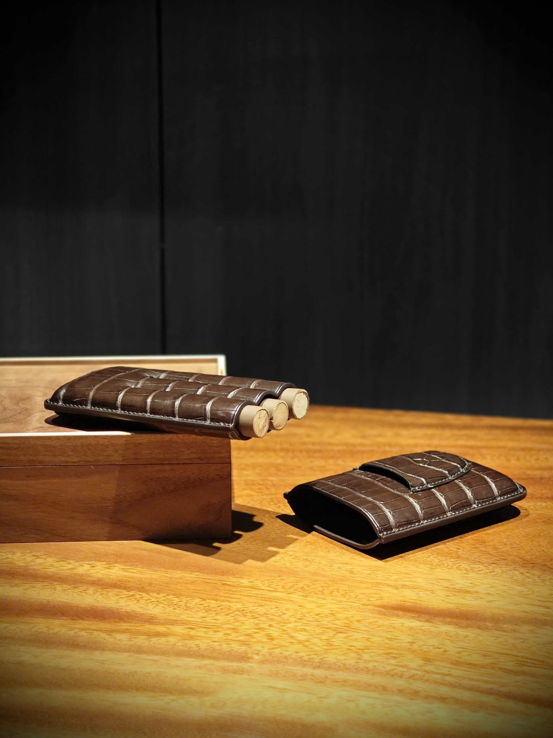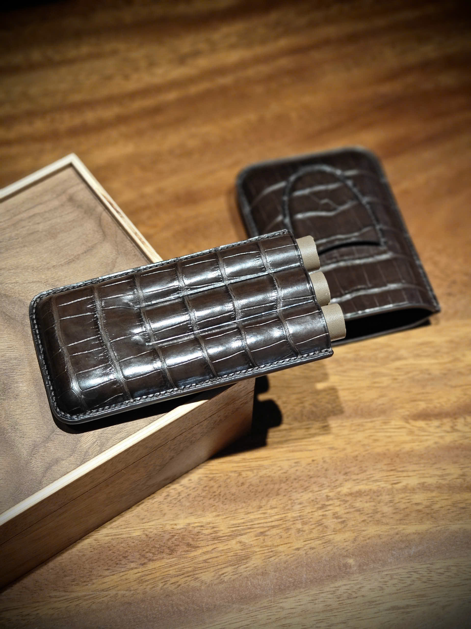 TP Crown – bao da xì gà 3 điếu từ da cá sấu Ý, chế tác thủ công bởi Thế Phạm.