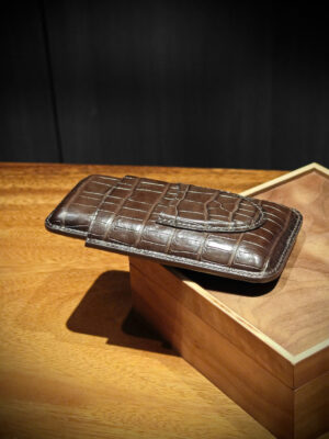 TP Crown – Bao da xì gà 3 điếu da cá sấu Ý vân đuôi, khâu tay thủ công cao cấp. Thiết kế sang trọng dành cho doanh nhân và người yêu xì gà.