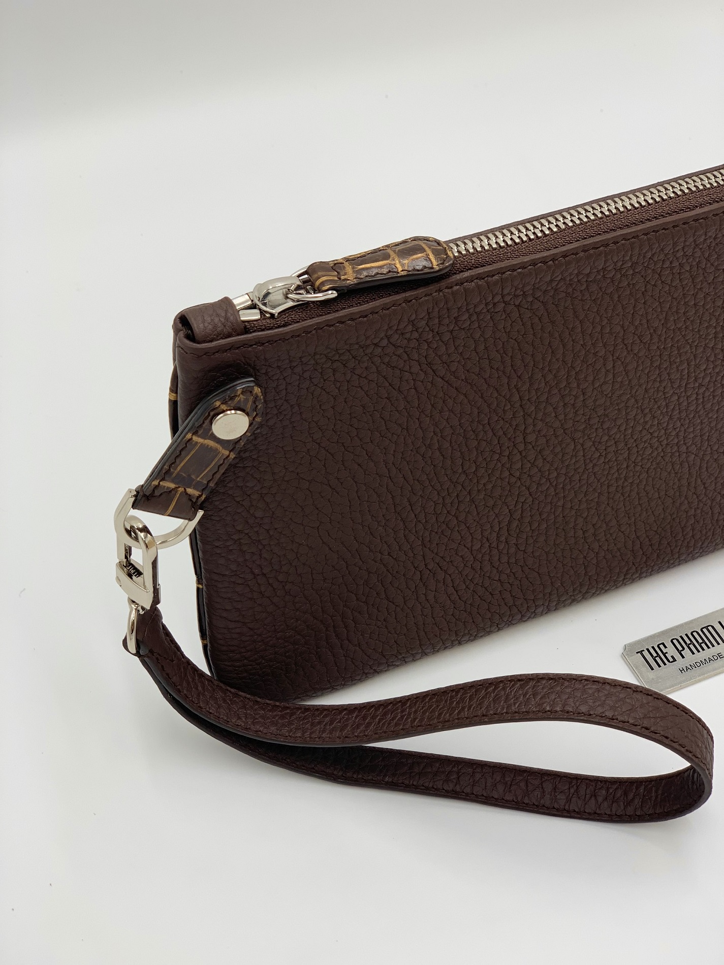 Khác biệt với những mẫu clutch cầu kỳ, TP Duo Clutch – Clutch da Togo phối cá sấu, thủ công unisex mang phong cách tối giản hiện đại, phù hợp với cả nam lẫn nữ. Dáng túi hình chữ nhật nhỏ gọn, ôm trọn vừa tay, dễ dàng kết hợp với nhiều phong cách thời trang: từ casual đến business.