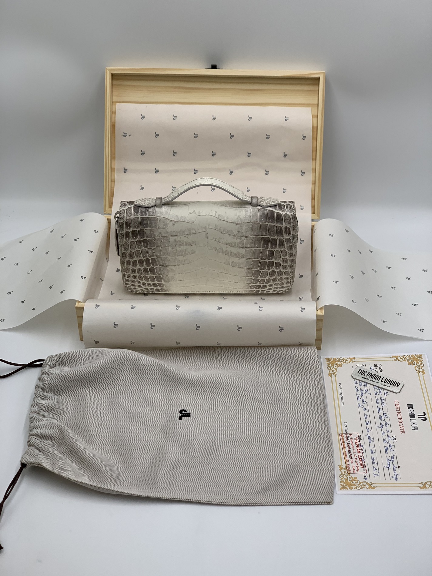 Da cá sấu Himalaya không chỉ hiếm mà còn là biểu tượng của quyền lực và gu thẩm mỹ đỉnh cao. Được lấy từ loài cá sấu nước mặn có gen bạch tạng hiếm gặp, phần da bụng – nơi có vân mềm, đẹp và đều – được tuyển chọn thủ công bởi nghệ nhân da lâu năm. Màu sắc đặc trưng chuyển tông từ trắng ngà đến xám sương, tạo nên hiệu ứng màu như những dãy núi tuyết Himalaya hùng vĩ.