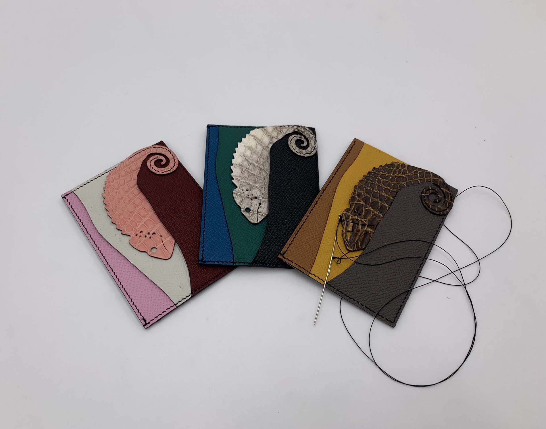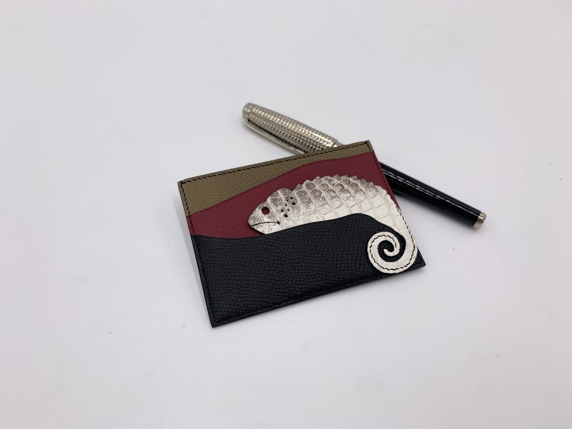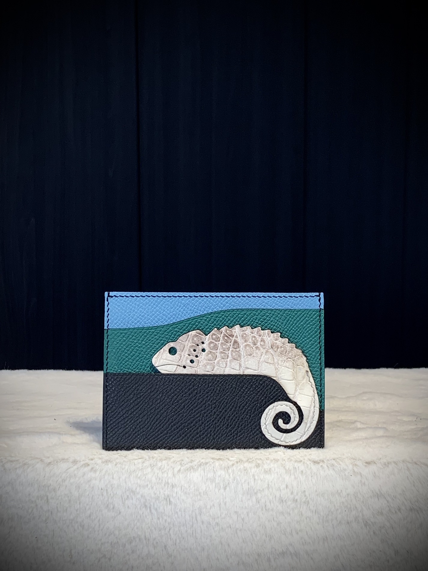 Ví thẻ TP Gecko Art – ví handmade 3 ngăn thẻ, 1 ngăn tiền, điểm nhấn Gecko bằng da cá sấu Himalaya, có thể đặt da cá sấu khác theo yêu cầu.